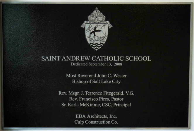 Saint Andrew Catholic School opened its doors in August 2008 with grades Pre-Kindergarten through five and a student body of 110. As students were promoted, the school grew to include grades PK3 through eight. The school is a parochial school, a ministry of Saint Andrew Catholic Parish. The beautiful modern building was the generous gift to the diocese by the ALSAM Foundation. The ground breaking ceremony was held on September 1, 2007 with The Most Reverend Bishop John C. Wester blessing the ground. Reverend Francisco Pires, founding Pastor of Saint Andrew Catholic Parish presided with local civic and diocesan representatives present to turn the soil. Children of the vicinity will benefit from this donation for many years to come.