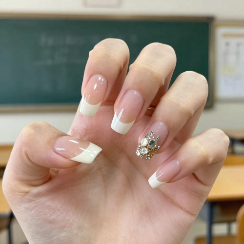 Fake nails of any kind are not permitted. We also do not allow jewlery with the exception of post earrings and religious jewlery. Makeup is not allowed, with the exception of performances.